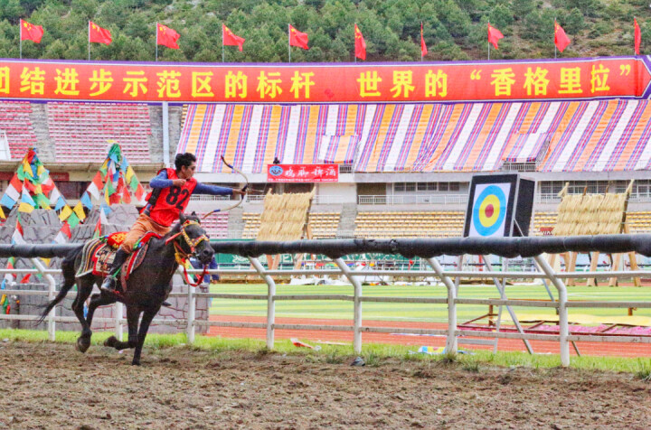 大理代表隊是此次參加跑馬拾哈達及跑馬射箭的唯一友鄰馬隊,該隊選手陸院章、余利剛在跑馬射箭項目中也獲得了第三、四名的好成績?!按罄砗偷蠎c都是云南省馬術比賽的主力,香格里拉的端午賽馬節(jié)我們每年都來參加,大理的三月街賽馬大會迪慶隊也不會缺席,多年來我們相互交流馬術,結下了深厚的友誼,雖然此次我們沒有獲得最好的成績,但三年未能來香格里拉端午賽馬節(jié)的遺憾補上了,能夠再續(xù)雙方民族、區(qū)域之間割不斷的情誼,很值得!”大理代表隊領隊余利邦表示。