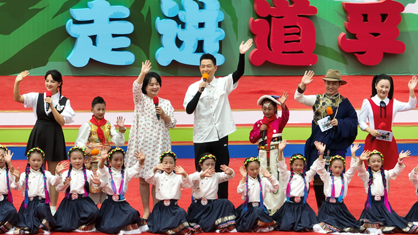 在中國共產(chǎn)黨成立102周年和甘孜州“鑄牢中華民族共同體意識 民族團結(jié)進家庭”實踐行動開展一周年之際,4日上午,中央廣播電視總臺少兒頻道《大手牽小手——走進甘孜》文藝演出在道孚縣濕地公園廣場進行錄制。鞠萍姐姐、金豆哥哥、徐柳姐姐、霍小雷哥哥、陳怡姐姐等央視少兒頻道知名主持人一同現(xiàn)身,與當(dāng)?shù)?00余名少年兒童同臺表演,歡歌踏舞頌黨恩,秉承初心展風(fēng)采。