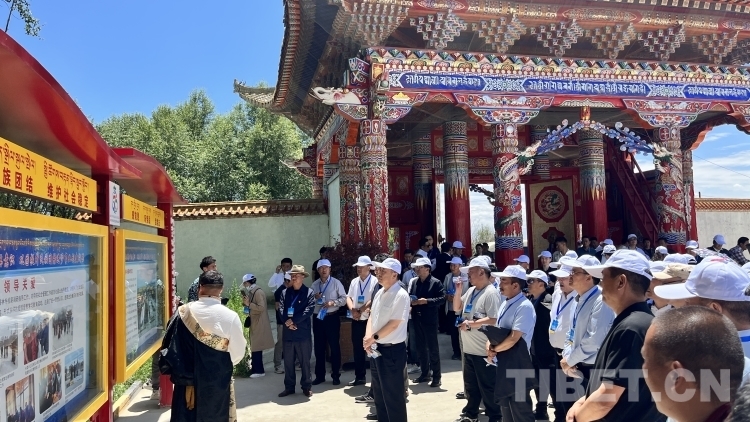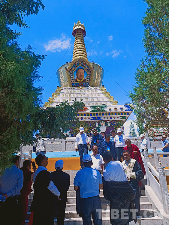 圖為與會人員在共和縣恰不恰鎮(zhèn)班禪塔林寺觀摩 攝影:華旦旦增