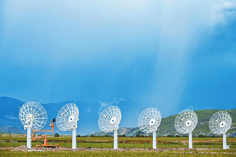 7月8日,四川省甘孜州稻城縣噶通鎮(zhèn)天氣說變就變。在國家重大科技基礎(chǔ)設(shè)施——空間環(huán)境地基綜合監(jiān)測網(wǎng)(子午工程二期)圓環(huán)陣太陽射電成像望遠(yuǎn)鏡項(xiàng)目建設(shè)現(xiàn)場,中國電科第39研究所現(xiàn)場施工負(fù)責(zé)人葉愛林和同事正在進(jìn)行天線增益調(diào)試實(shí)驗(yàn)。突然,一道閃電劃過天際,轟隆隆的雷聲過后便是傾盆大雨,葉愛林和同事不得不停下手中正在進(jìn)行的實(shí)驗(yàn),臨時(shí)找地方躲雨?!斑@雨下不了多久,等雨停了,我們再繼續(xù)?!痹陧?xiàng)目建設(shè)現(xiàn)場已工作了480多天的他,被同事們稱作半個(gè)氣象“土專家”。他不僅能“察言觀色”看懂高原上的云彩,還能大差不差地推測出天氣變化。在海拔3800多米的噶通鎮(zhèn),許多科研人員像葉愛林一樣,默默奮戰(zhàn),希望在建的這一國家重大科技基礎(chǔ)設(shè)施能早日運(yùn)行,為中國空間科學(xué)事業(yè)的發(fā)展提供關(guān)鍵性的探索幫助及技術(shù)支持,使我國步入世界空間科學(xué)領(lǐng)域的先進(jìn)行列。