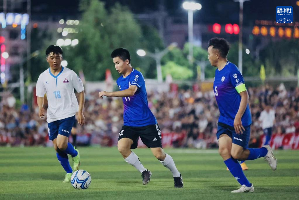 2023年6月23日,來自果洛藏族自治州的格薩爾王足球隊出現(xiàn)在貴州省黔東南苗族侗族自治州榕江縣的“村超”賽場,與當?shù)厍蜿犻_展了一場比賽,有超5萬名球迷現(xiàn)場觀看,最終兩隊以2:2戰(zhàn)成平手。