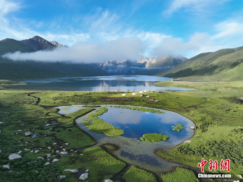 7月19日,盛夏時節(jié),青海省果洛藏族自治州久治縣年保玉則山間云霧繚繞,山下鮮花盛開,水清草豐,靜謐的湖水與嶙峋的山巒相映成趣,宛如仙境。[詳細] -