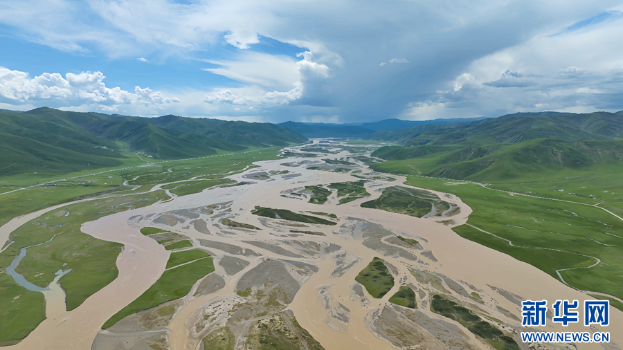圖為在青海省果洛藏族自治州甘德縣境內(nèi)拍攝的夏日風光(無人機照片)。新華網(wǎng) 宋忠勇 攝