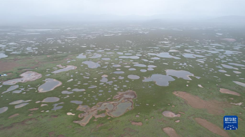 大小湖泊星羅棋布的當曲濕地(7月24日攝,無人機照片)。新華社記者 劉詩平 攝