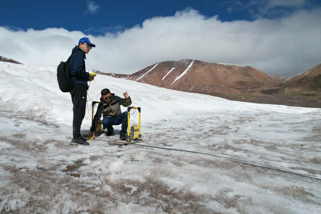 2022年江源綜合科學(xué)考察隊(duì)曾對(duì)此冰川進(jìn)行地質(zhì)雷達(dá)探測(cè),通過布設(shè)一維測(cè)線獲取冰川前緣的冰厚數(shù)據(jù),以及冰下地形走勢(shì)。今年在相同位置進(jìn)行探測(cè),增加了兩個(gè)二維測(cè)網(wǎng)的布設(shè),獲取的數(shù)據(jù)用于對(duì)比一年來冰川前緣冰厚和冰下地形的變化,計(jì)算測(cè)網(wǎng)內(nèi)準(zhǔn)確的冰儲(chǔ)量,揭示氣候變化對(duì)冰川退化的影響,以及冰川運(yùn)動(dòng)對(duì)于冰下基巖的剝蝕特征。
