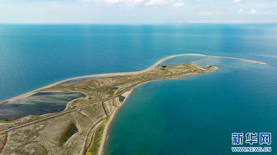 這是8月2日拍攝的青海湖二郎劍景區(qū)二郎劍半島。(無人機照片)新華網(wǎng) 郭勇良 攝