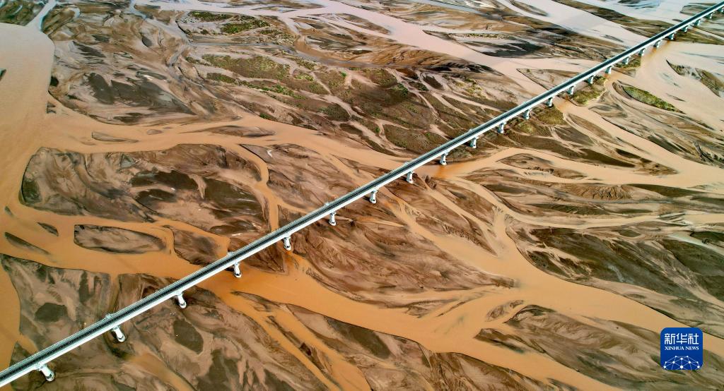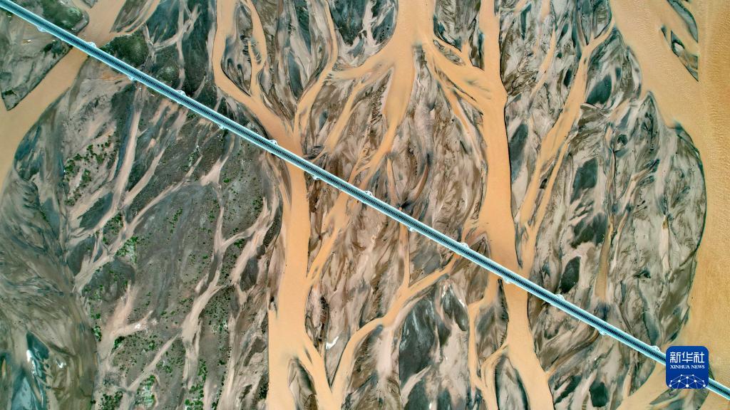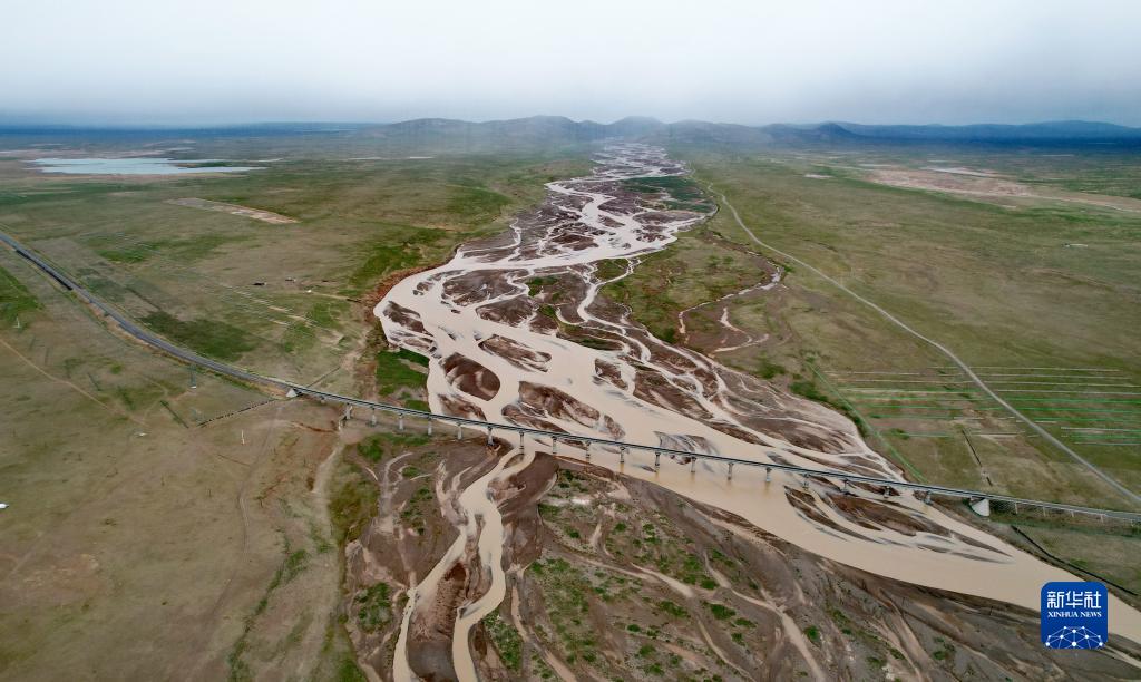 青藏鐵路跨過沱沱河的辮狀河道(7月26日攝,無人機照片)。新華社記者 劉詩平 攝