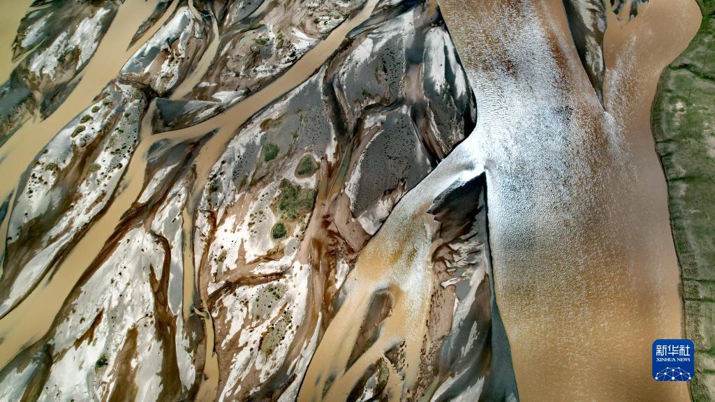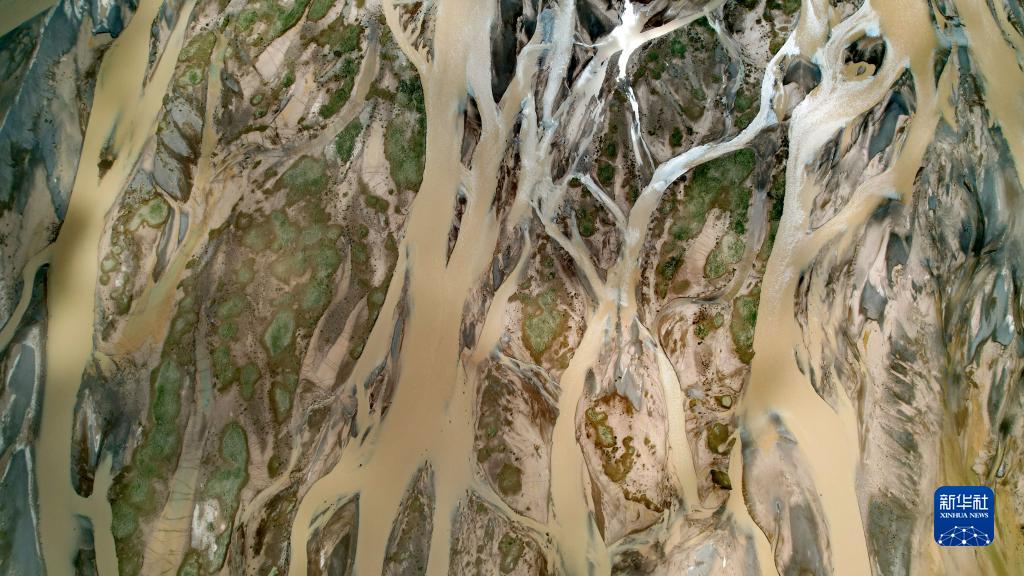 在沱沱河與當曲匯合處的囊極巴隴拍攝的辮狀河道局部(7月26日攝,無人機照片)。新華社記者 劉詩平 攝