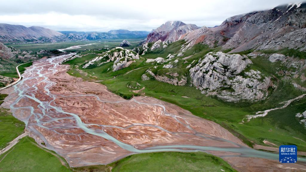 通天河支流的辮狀河道及周邊景色(7月26日攝,無人機照片)。新華社記者 劉詩平 攝
