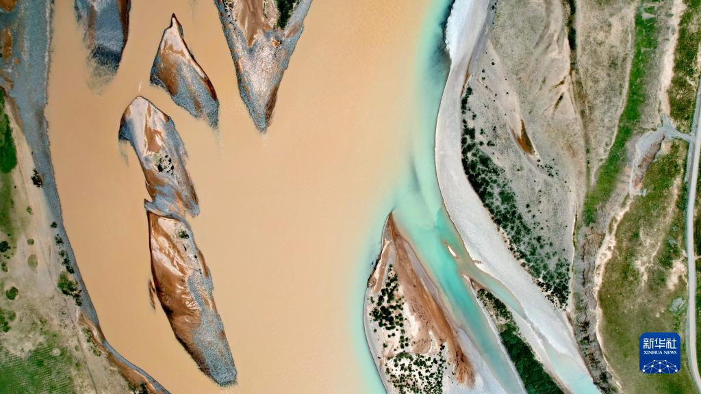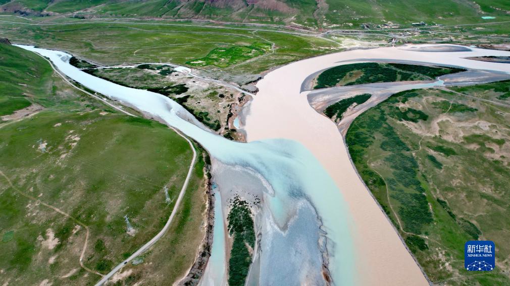 當曲支流布曲與尕爾曲會合處(7月27日攝,無人機照片)。新華社記者 劉詩平 攝