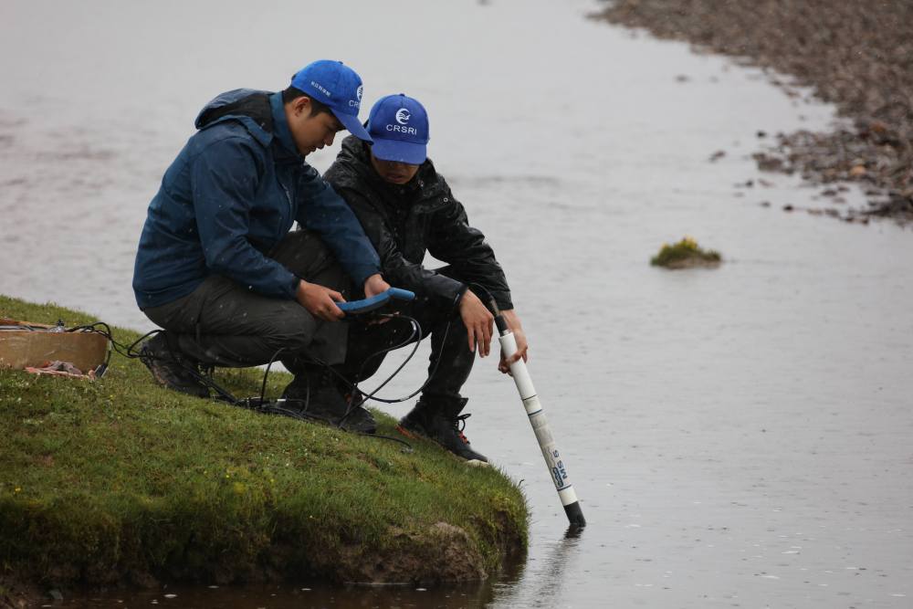 來自長江科學(xué)院河流研究所的科考隊員徐志成和楊緒海,每到一個采樣點就采集河道床沙和懸沙樣品,測量河寬、水深、比降、流速,對比此前科考觀測數(shù)據(jù),分析長江源區(qū)河道水沙輸移特性和河床演變情況。