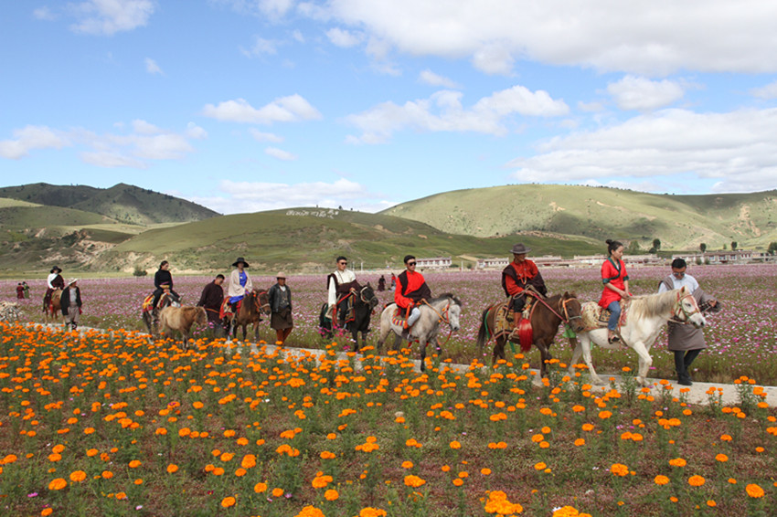 2017年開(kāi)始,理塘縣把旅游融入生態(tài)修復(fù)中,實(shí)施旅游扶貧新村建設(shè)項(xiàng)目,加快基礎(chǔ)設(shè)施建設(shè),打造特色旅游產(chǎn)業(yè),將漢戈村800畝沙化地新建成鮮花帶,配套生態(tài)旅游停車(chē)場(chǎng)、花村旅客接待中心、生態(tài)旅游廁所等服務(wù)設(shè)施,開(kāi)展村容村貌整治工作,補(bǔ)充“古道驛站,牧民天堂”牧區(qū)生活體驗(yàn)區(qū)、鍋莊廣場(chǎng)、特色帳篷酒店等旅游項(xiàng)目。