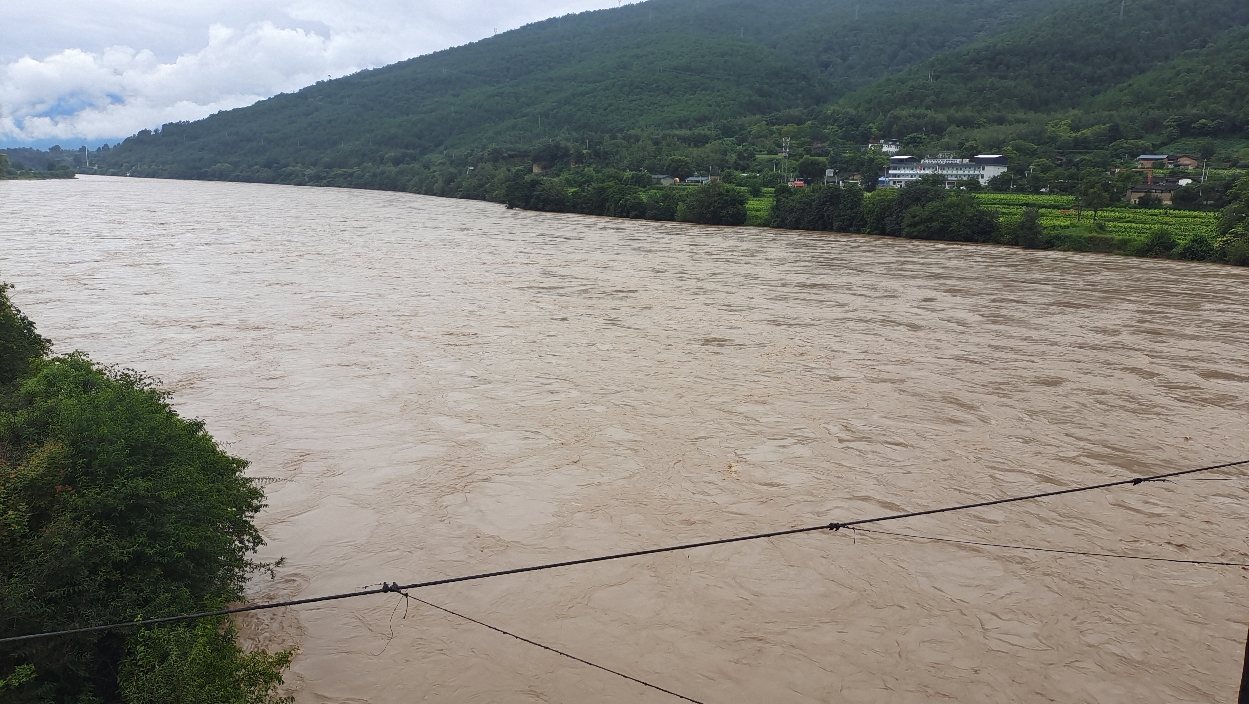 監(jiān)測數據顯示,8月21日15時下游金江鎮(zhèn)水文站水位1823.59米,超警戒1.09米,相應流量每秒4950立方米。隨著持續(xù)降水過程,金沙江水位持續(xù)上升,上江鄉(xiāng)至金江鎮(zhèn)臨江一線水位已逼近農田,江水已沒過低洼地帶的楊柳林。