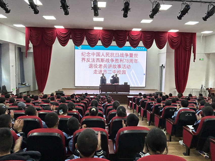 9月4日,康定市第二中學(xué)階梯教室里座無虛席,85歲高齡的康定籍退役老兵熊志榮正在向該校學(xué)生們講述保家衛(wèi)國的故事。[詳細(xì)] -