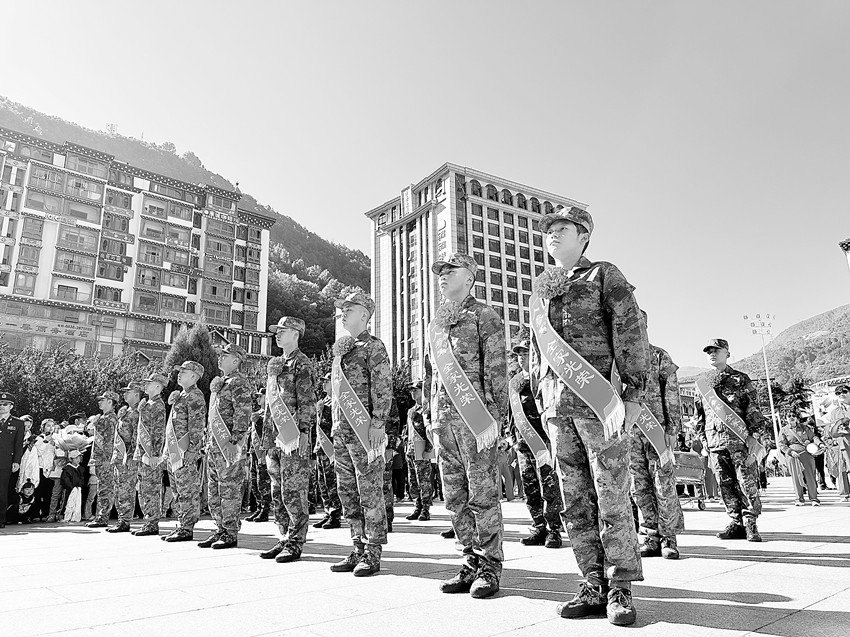 9月15日上午10時,康定市情歌廣場,25名新兵身著迷彩服,胸前佩戴大紅花,肩上披著“一人參軍,全家光榮”綬帶,身姿挺拔、精神抖擻,隊列整齊,意氣風(fēng)發(fā)。[詳細(xì)]