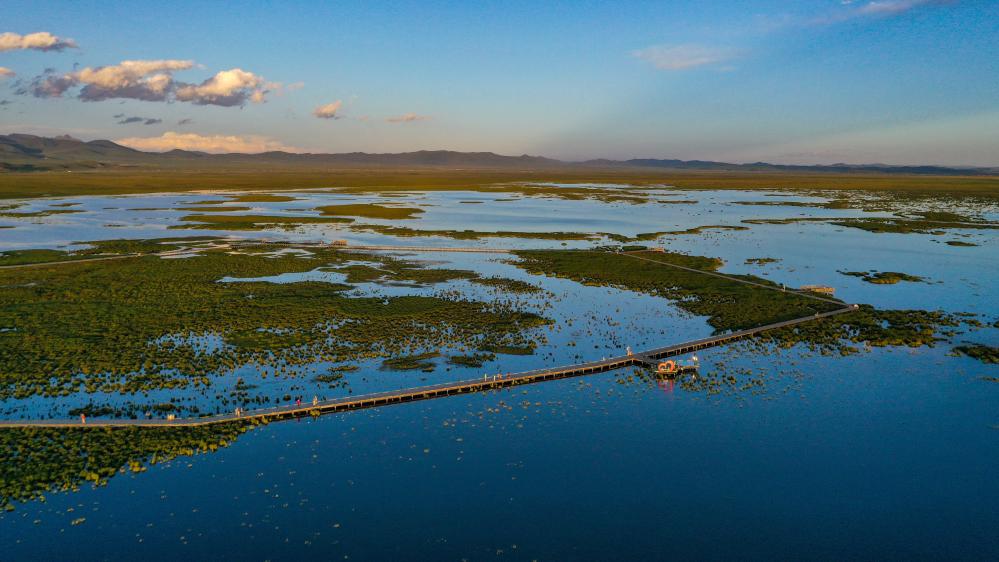 除了治沙,生態(tài)治理的另一個重點是濕地保護。據(jù)阿壩州水務(wù)局總工程師龔智成介紹,以若爾蓋濕地為代表的川西北濕地,流入黃河的水占黃河全流域多年平均徑流量的8.8%。因氣候變化、歷史上為發(fā)展畜牧業(yè)“開溝排水”“向濕地要草地”等不當做法,濕地一度退化嚴重。若爾蓋濕地最大的湖泊花湖,曾一度萎縮至215公頃。