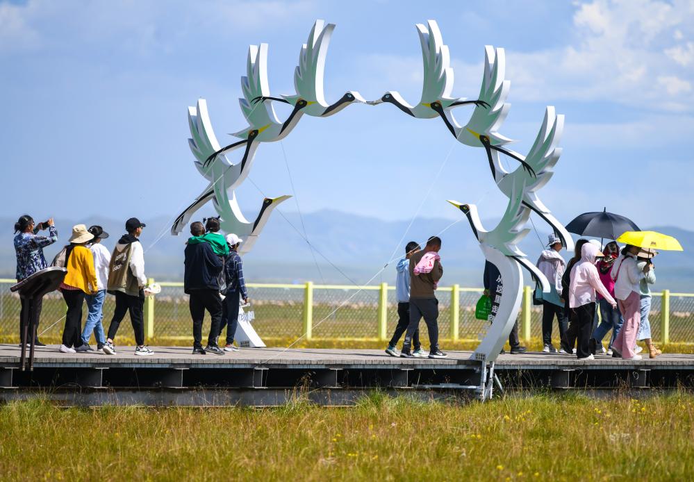 圖為游客在四川省阿壩州若爾蓋縣花湖景區(qū)觀光。新華社記者王曦 攝
