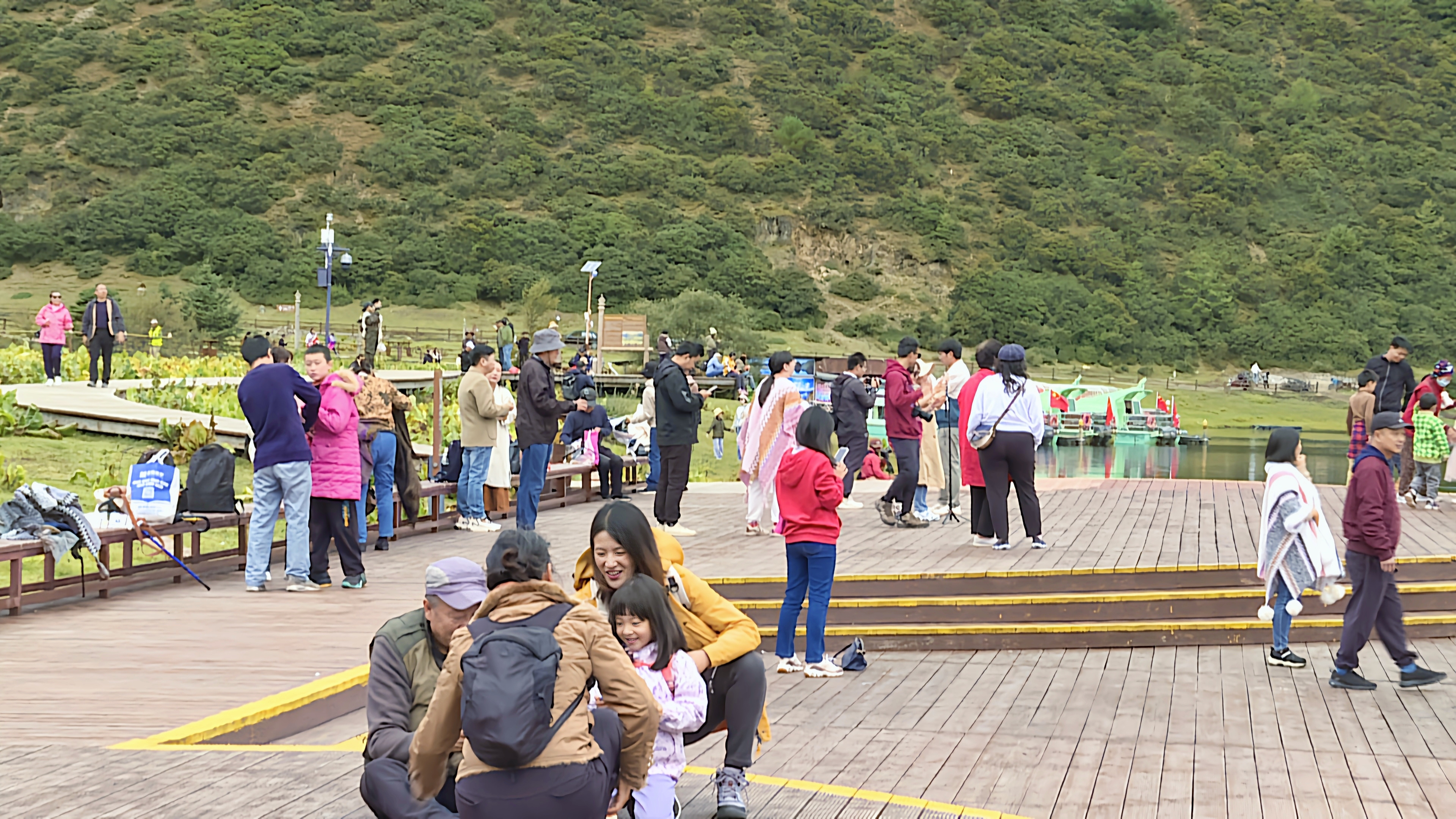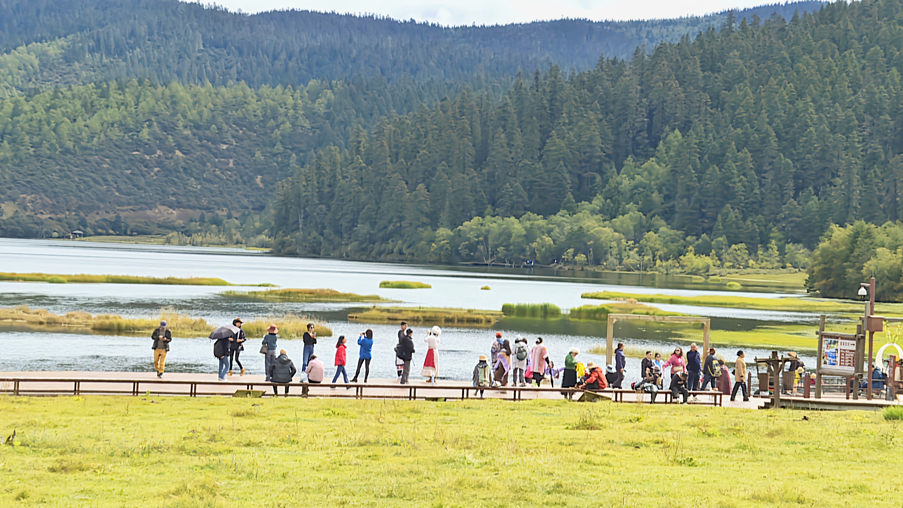 秋日的普達(dá)措國家公園層林盡染、色彩斑斕,高山草甸、原始森林與湖泊濕地構(gòu)成了一幅幅美麗的畫卷,屬都湖棧道上人群熙熙攘攘?!拔沂堑谝淮蝸硐愀窭锢糜危愀窭锢o我的感覺就是,這里的生態(tài)環(huán)境保護(hù)得很好,綠水青山,很值得來游玩。”游客宋女士表示。