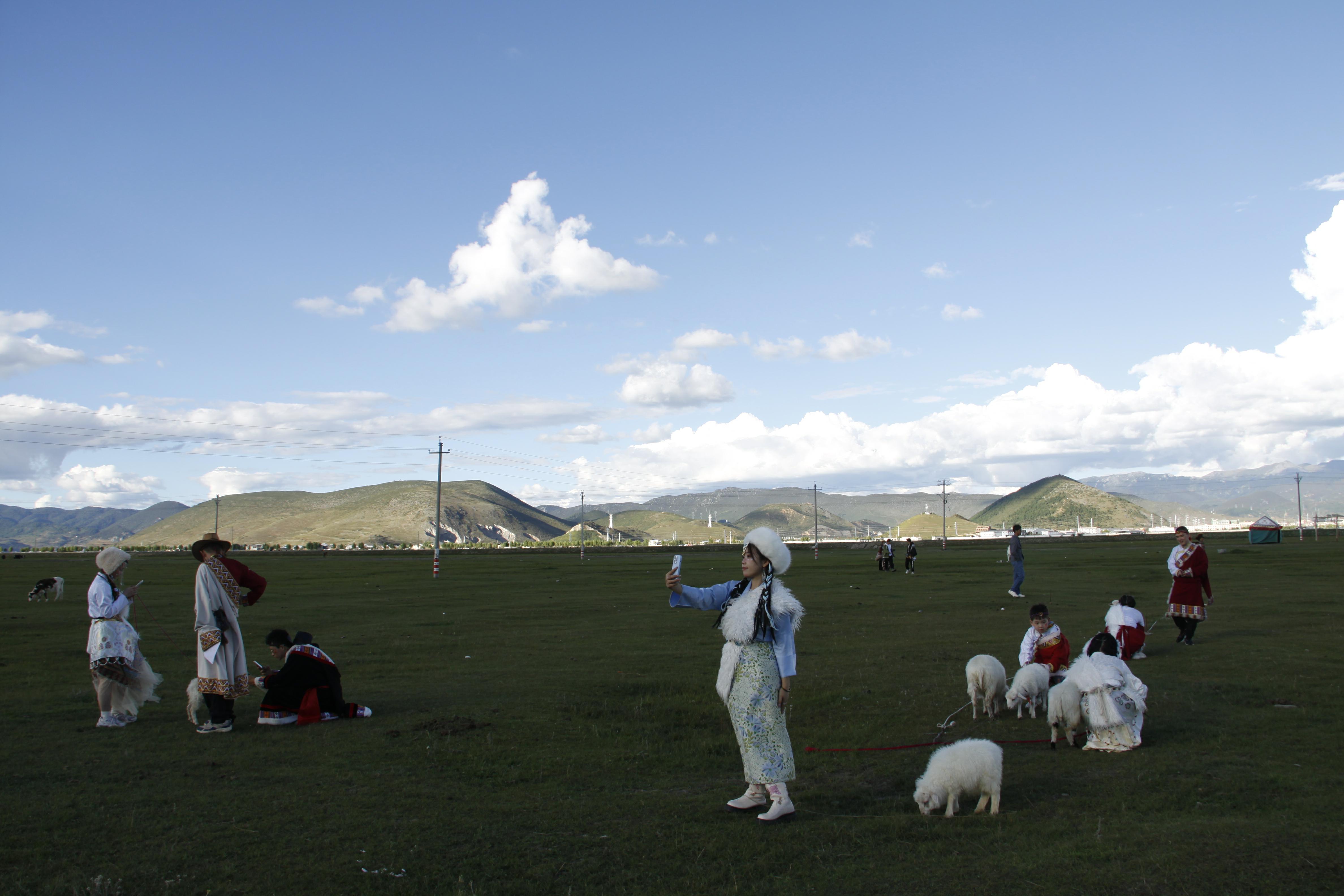 時(shí)下,迪慶高原秋景如畫(huà)。眾多游客紛紛到香格里拉市建塘草原打卡,在藍(lán)天白云下,有的騎馬賞景,有的身著民族服裝旅拍,還有的與小綿羊親密接觸,構(gòu)成了一道道亮麗的風(fēng)景線。