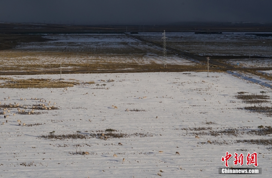 10月12日,成群普氏原羚在青海湖北岸雪中覓食、漫步。當(dāng)日,在青海湖北岸的青海省海北藏族自治州剛察縣哈爾蓋“羚羊小鎮(zhèn)”,成群的普氏原羚在雪中覓食、漫步。普氏原羚是世界瀕危物種、國家一級重點(diǎn)保護(hù)野生動(dòng)物,現(xiàn)僅分布于青海湖周圍,成為青海湖獨(dú)有的珍稀有蹄類動(dòng)物和旗艦物種。中新社記者 馬銘言 攝