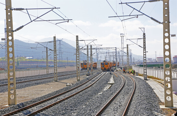 近日,記者在滇藏鐵路麗香段香格里拉站看到,現(xiàn)場(chǎng)正在進(jìn)行大機(jī)搗固作業(yè),工人們正緊抓施工進(jìn)度,高效組織施工作業(yè),全力以赴保障全線順利開(kāi)通運(yùn)營(yíng)。