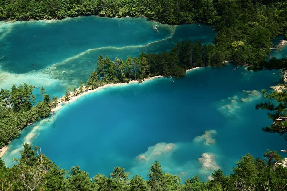 今的火花海,其修復(fù)方案得到聯(lián)合國教科文組織肯定支持,榮獲四川省“科技進步一等獎”。圖據(jù)九寨溝管理局