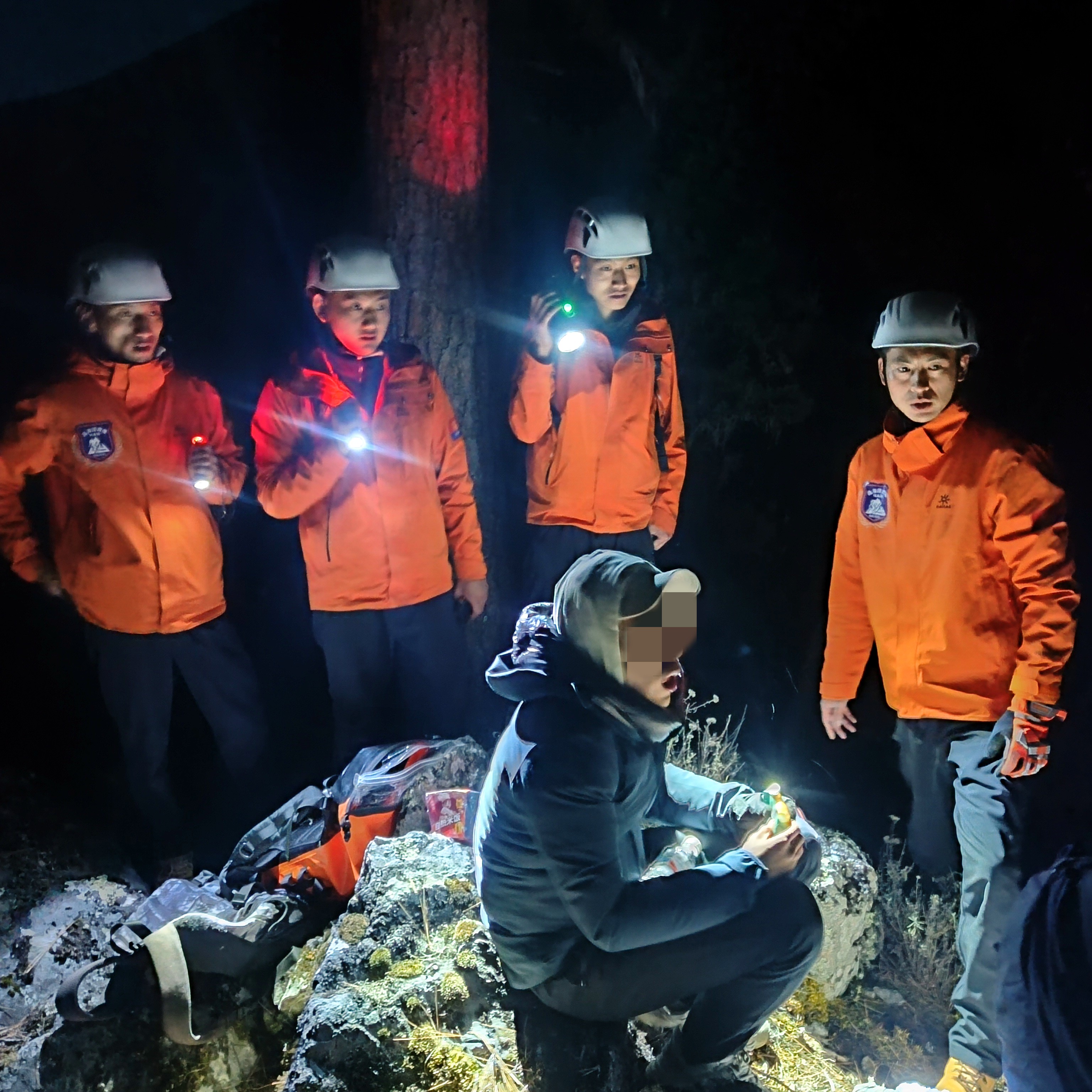 救援人員一邊與報(bào)警人保持聯(lián)系,一邊聯(lián)系當(dāng)?shù)剜l(xiāng)鎮(zhèn)干部及村民,了解地形地勢(shì)和搜救線路。21時(shí)23分,救援人員沿著崎嶇山路到達(dá)海拔近4000米被困現(xiàn)場(chǎng)。