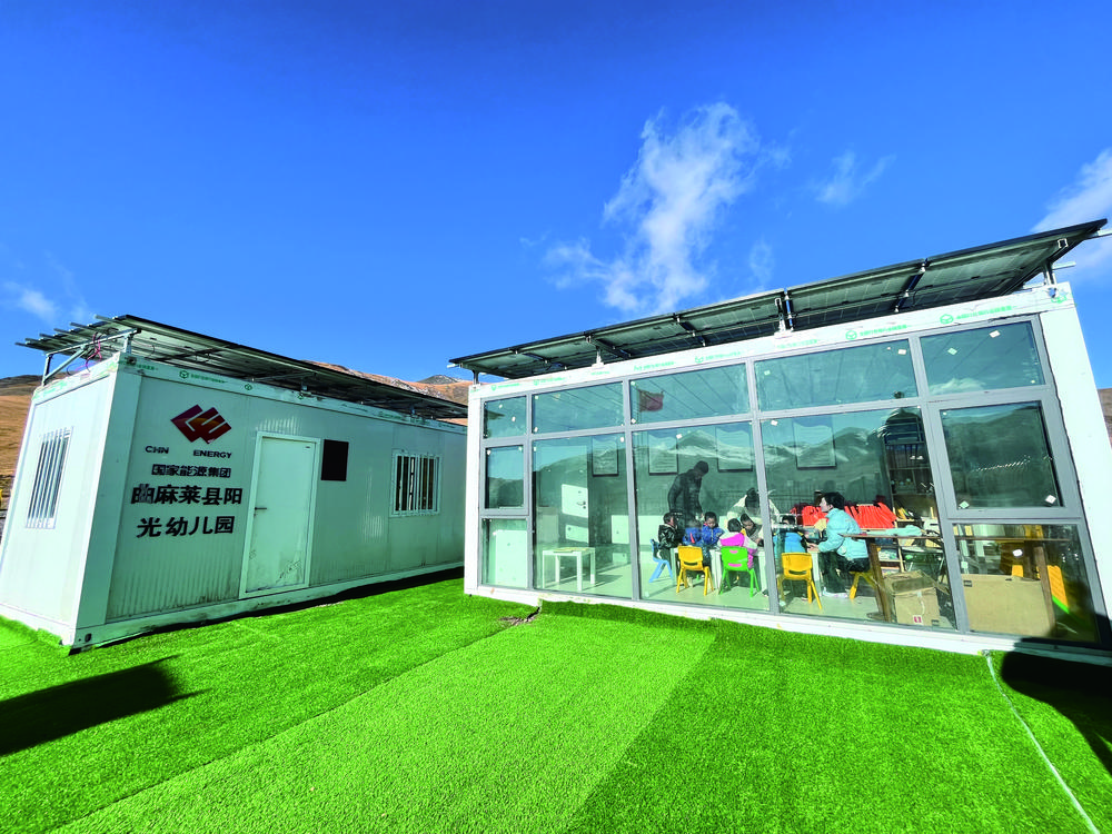 “迷你”幼兒園由兩個集裝箱組成,箱頂裝有太陽能光伏系統(tǒng),可以滿足供暖、照明等需求。兩個集裝箱分別是孩子們的教室和功能室。溫暖的陽光透過一扇大大的落地窗照進(jìn)教室,孩子們和老師在里面一起看書學(xué)習(xí)做游戲,雖然室外寒風(fēng)凜冽,但教室內(nèi)卻非常溫暖。