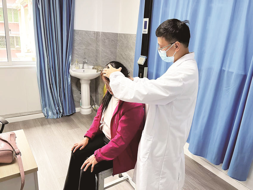 徐英俊通過檢查發(fā)現(xiàn)夫妻倆都患有較嚴重的退化性膝關節(jié)炎、關節(jié)腔積液、內(nèi)外側韌帶受損等疾病。經(jīng)過慎重考慮,徐英俊決定為其進行中西醫(yī)結合治療,并為他們制定了一套詳細全面的治療方案。超聲引導下關節(jié)穿刺、超聲引導下隱神經(jīng)阻滯、頰針療法、針刺療法……徐英俊因地制宜開展了多項新技術、新項目,效果立竿見影。