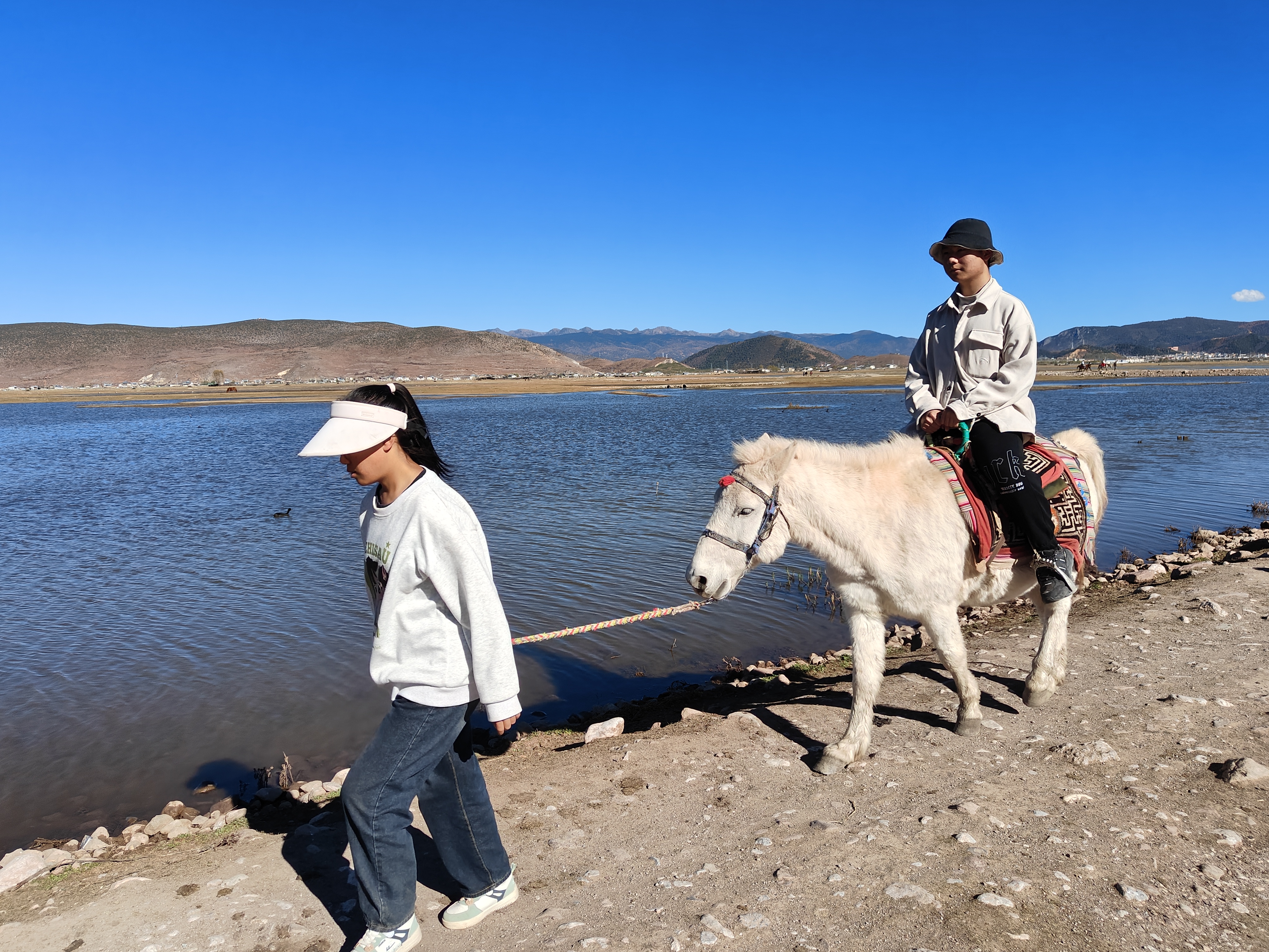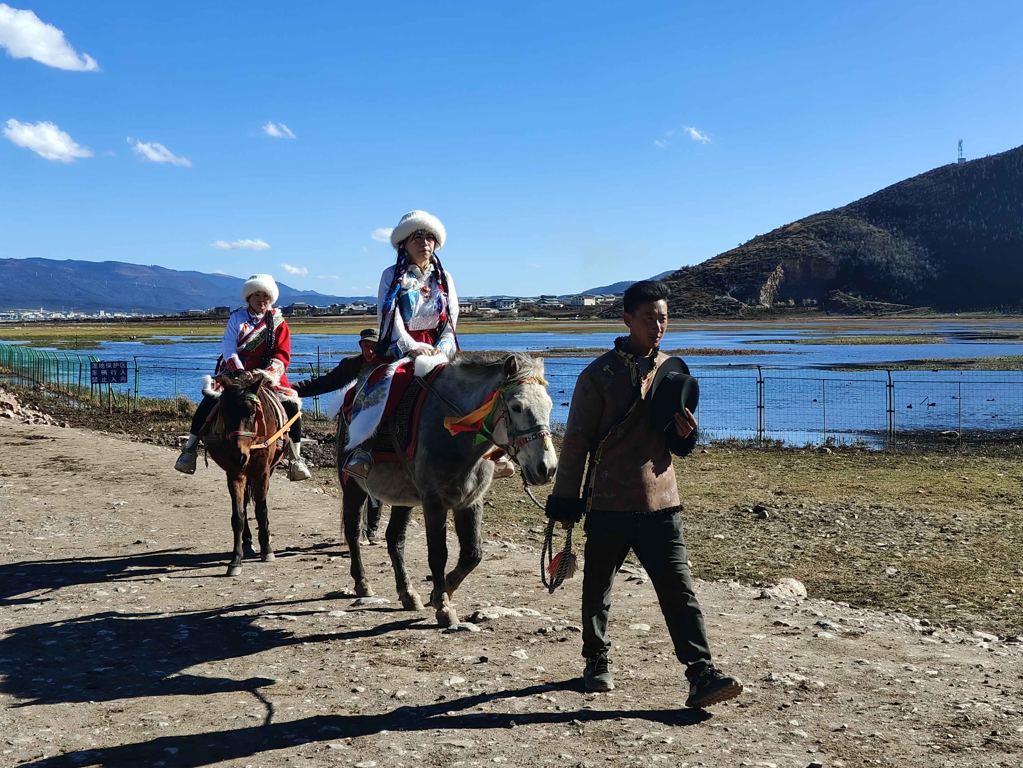 進(jìn)入11月,迪慶的氣溫雖然持續(xù)下降,但并不影響游客們的游玩熱情。納帕海陽光明媚、碧波蕩漾,不少游客選擇到納帕海環(huán)湖游,騎行的、騎馬的、賞景的、拍照的游客絡(luò)繹不絕。圖為游客在納帕海濕地騎馬,體驗(yàn)藏族馬背文化魅力。