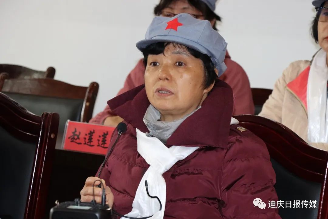 甘祖昌之女甘仁榮回憶起父親,眼中噙滿淚水。其父親甘祖昌,中國人民解放軍少將軍銜,被稱為“將軍農(nóng)民”。1926年參加村農(nóng)民協(xié)會,1927年加入中國共產(chǎn)黨,翌年參加中國工農(nóng)紅軍。在革命生涯中,歷任湘贛軍區(qū)紅軍兵工廠副科長、八路軍第三五九旅供給部軍需科科長、三五九旅供給部副部長、晉綏軍區(qū)三五九旅供給部部長、西北野戰(zhàn)軍第二縱隊后勤部部長、第一野戰(zhàn)軍二軍后勤部部長等職。先后參加了國內(nèi)革命戰(zhàn)爭、抗日戰(zhàn)爭、解放戰(zhàn)爭,為了黨和人民的事業(yè)出生入死、數(shù)次負傷 。中華人民共和國成立后,甘祖昌歷任新疆軍區(qū)后勤部副部長兼供給處處長,兼財務(wù)處處長,新疆軍區(qū)后勤部部長。1955年被授予少將軍銜,榮獲八一勛章、獨立自由勛章、解放勛章等 。1957年,甘祖昌在辭去新疆軍區(qū)后勤部部長的職務(wù)后,帶著家人回到闊別20多年的家鄉(xiāng),從此開始了29年的“農(nóng)民生涯”。從江西到延安再到新疆,甘祖昌將人生中三分之二的時光都奉獻給了國家獨立和民族解放的革命斗爭中。其母親龔全珍是開國少將甘祖昌夫人、江西省萍鄉(xiāng)市南陂小學原校長。1957年8月,龔全珍隨丈夫甘祖昌回家鄉(xiāng)江西省蓮花縣務(wù)農(nóng)并一直從事鄉(xiāng)村教師工作。離休后,又扶貧助學,開辦“龔全珍工作室”服務(wù)社區(qū)、群眾。著有紀實作品《我和老伴甘祖昌》。習近平總書記先后兩次親切接見龔全珍,親切地稱她為“老阿姨”。龔全珍曾榮獲第四屆全國道德模范稱號、“感動中國”2013年度十大人物 、全國優(yōu)秀共產(chǎn)黨員 、“感動江西十大教育年度人物”“全國模范退役軍人”等稱號。甘仁榮在座談會上談及父母從小對子女嚴苛的家教,從飯桌上絕不能浪費一粒糧的教育再到了父母離開城市回農(nóng)村搞建設(shè)的過往,從幼兒的少不更事,到如今自己親身來到迪慶,感受父輩走過的路,真切地體會到了父輩身上不畏艱險、堅韌不拔、頑強拼搏、攻堅克難的奮斗精神和為黨和人民的事業(yè)“鞠躬盡瘁、死而后已”的偉大獻身精神?,F(xiàn)場氣氛莊嚴肅穆,令人感動。