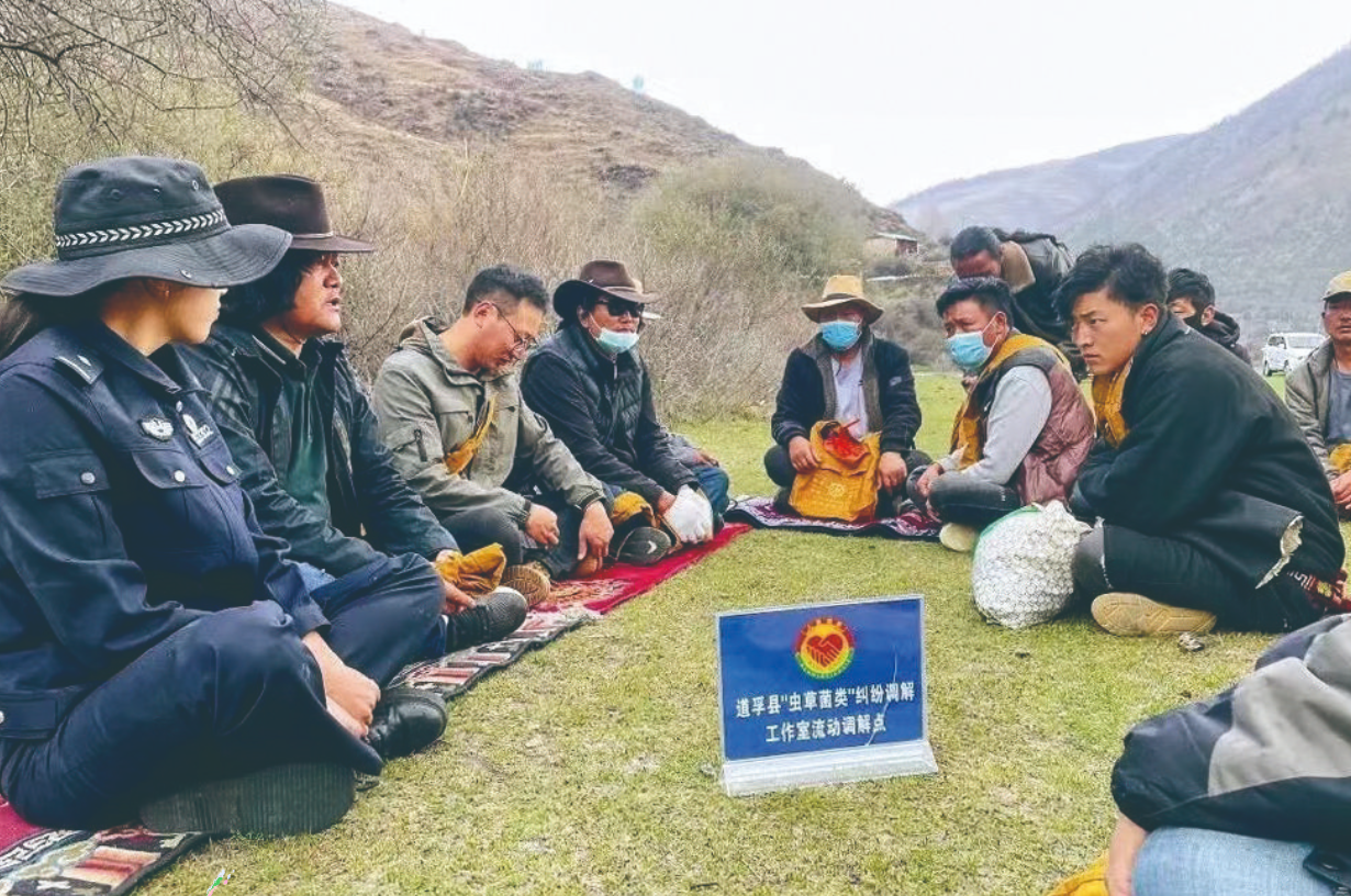 “蟲草菌類”糾紛調(diào)解工作室流動(dòng)調(diào)解點(diǎn)現(xiàn)場調(diào)解矛盾糾紛。