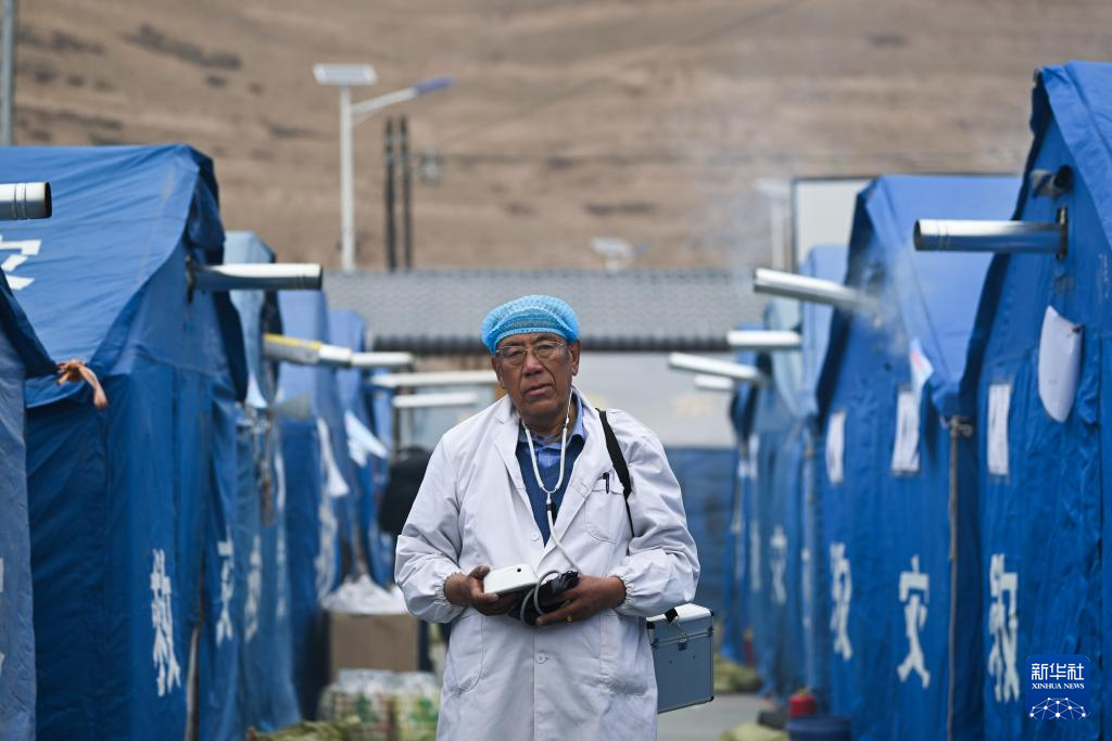 積石山6.2級地震發(fā)生后,青海省海東市循化撒拉族自治縣道幃藏族鄉(xiāng)牙木村部分房屋出現(xiàn)損毀,當(dāng)?shù)卣谝粫r間在牙木村建設(shè)安置點。因為年輕時就讀于衛(wèi)生學(xué)校、掌握基本的醫(yī)療技能,60歲的完么仁增成為安置點的義務(wù)衛(wèi)生員,為村民量血壓并普及健康知識?!拔蚁胱鲂┝λ芗暗氖聨椭l(xiāng)親們。”完么仁增說。