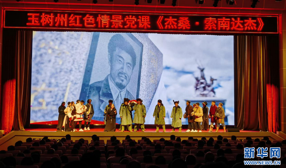 圖為紅色情景黨課《杰桑·索南達(dá)杰》演出現(xiàn)場(chǎng)。(2023年12月18日攝) 新華社記者 柳澤興 攝