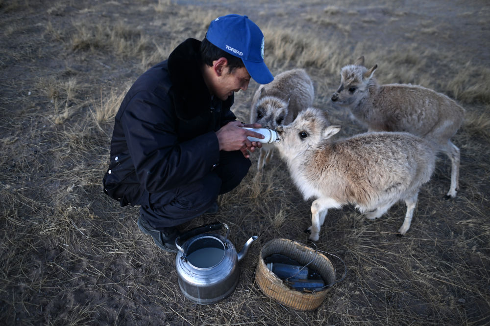 喂養(yǎng)小藏羚羊們成了才文多杰最大的寄托