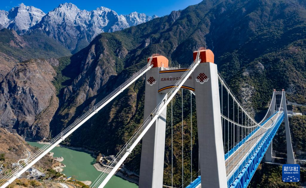 虎跳峽金沙江鐵路大橋位于云南麗江與香格里拉交界處的虎跳峽景區(qū),橫跨金沙江,全長882.5米,主跨達(dá)660米,橋面離江面垂直距離約250米,大橋兩端分別與玉龍雪山隧道和哈巴雪山隧道連接,是麗香鐵路重點控制性工程。