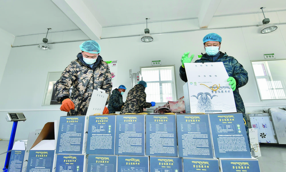 1月24日,記者走進青海省海西蒙古族藏族自治州格爾木市唐古拉山鎮(zhèn)長江源村的唐古拉牦牛、藏羊精深加工基地,車間內(nèi)屠宰、冷凍、包裝等功能區(qū)劃分明確,一應俱全。忙碌的生產(chǎn)線上,身穿食品加工工作服的工作人員正沿著流水線緊張有序地工作。剔骨、粗分完成后,工作人員再按不同部位精準分割、整齊打包,等待銷售發(fā)貨,全力保障年貨產(chǎn)品的市場供應。長江源村駐村第一書記梁亮告訴記者:“臨近春節(jié),牛羊肉禮盒備受青睞,浙江、江蘇、西藏等地的訂單也比平時增加了很多。牛羊肉產(chǎn)業(yè)鏈的延伸,成為了我們長江源村鄉(xiāng)村振興的又一把‘金鑰匙’?!?/p>