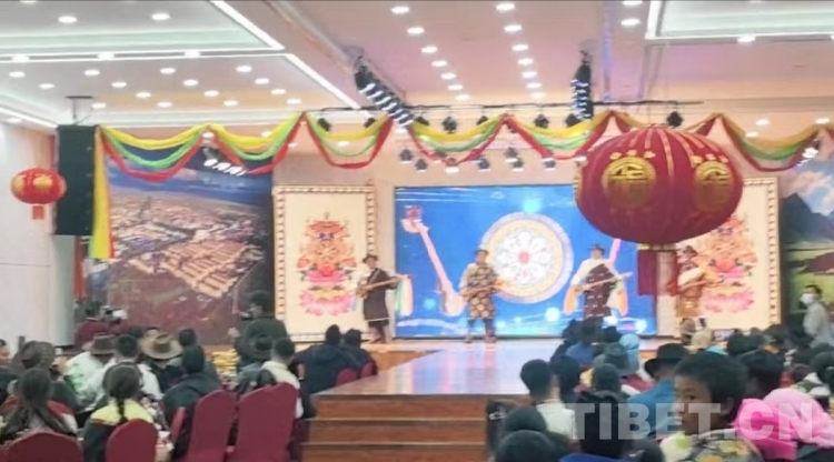 村晚在“新年新氣象,愿大家的生活如同高原上的雄鷹,自由翱翔在幸福的天空;愿每個人的笑容如雪山之巔的雪蓮花,純潔而美麗...扎西學(xué)!”《吉祥禮贊》的祝福詞中開始。