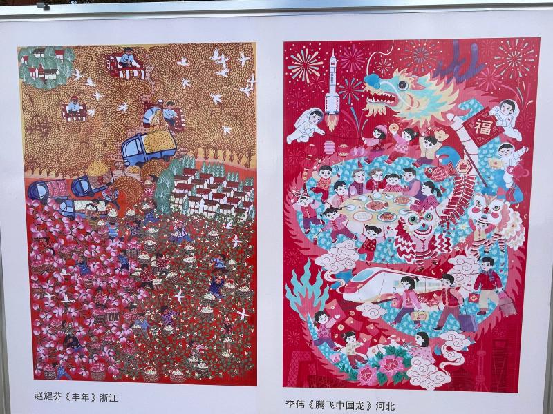 30余副年畫精品亮相展區(qū),舞龍、財(cái)神、門神、年畫娃娃……為大家?guī)硇履晗矐c氛圍。