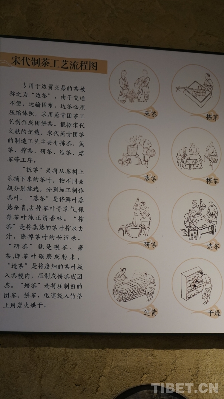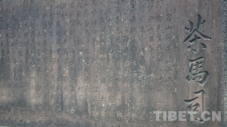 推開茶馬司的大門,出現(xiàn)在眼前的“茶馬司”石碑用漢藏兩種文字記錄著茶馬司的興衰歷史。“宋時(shí)因連年用兵,所需戰(zhàn)馬,多用茶換取。神宗熙寧七年,派李杞入川,籌辦茶馬政事,于名山,以名山茶易馬用……明洪武時(shí),對茶葉實(shí)行官買官銷,由茶馬司主持交易……”