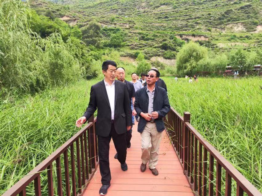 阿壩州人大常委會(huì)主任李為國(guó)(左一)在基層調(diào)研農(nóng)作物生長(zhǎng)情況。阿壩州人大辦公室供圖