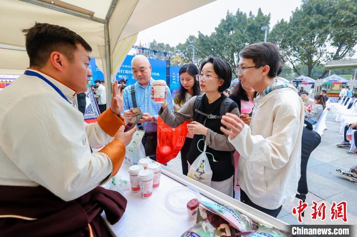 圖為廣州市民體驗(yàn)果洛特產(chǎn)。果洛州文體旅游廣電局 供圖