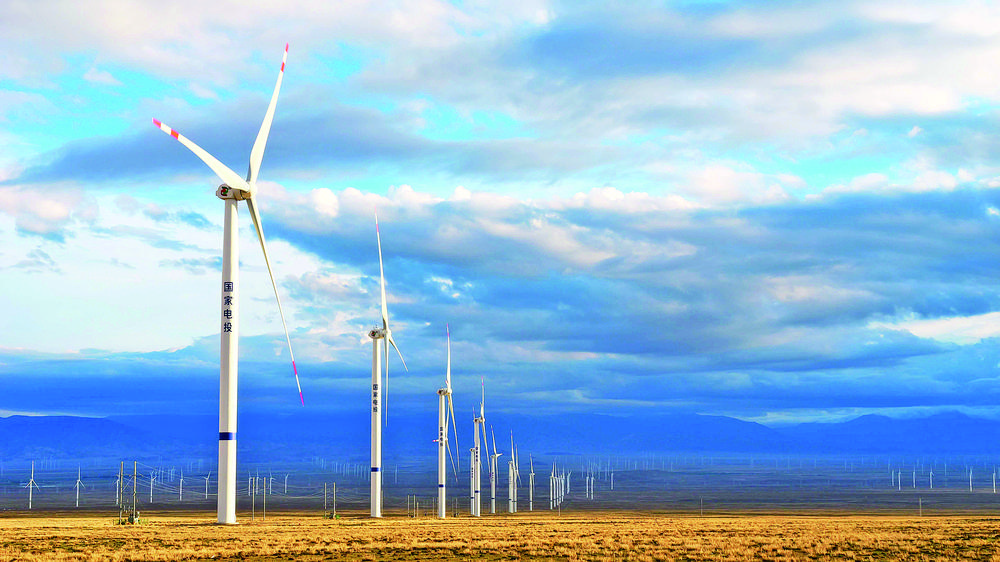 大約行駛50公里,只見一臺臺風力發(fā)電機如守望者般擎天而立,風機頂端三個碩大無比、潔白的葉片迎風轉(zhuǎn)動,在天空中劃出優(yōu)美弧線。自然之壯美,人力之奇?zhèn)?,在這里交織出一曲動人交響。