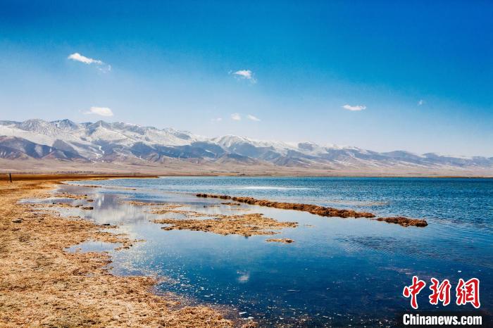 圖為消融的青海湖與遠處雪山形成醉人畫卷。趙海梅 攝