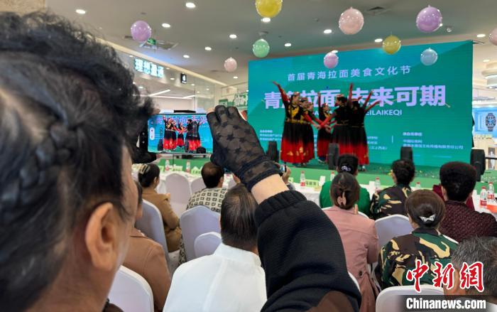 活動現(xiàn)場,人頭攢動,展示區(qū)展出拉面成品,可品嘗手工拉面,亦有牦牛肉干、甜醅等青海特色美食,相關從業(yè)人員“各顯神通”,吸引來往行人。