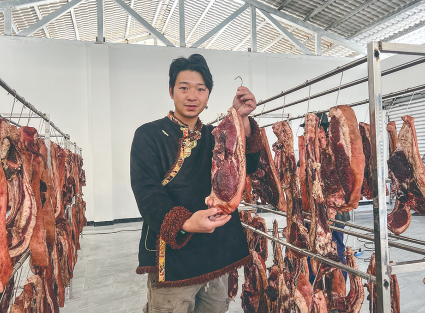 在洛桑和鄉(xiāng)親們的共同努力下,第一批“等風兔”即食手撕兔產(chǎn)品成功面市。同年6月,洛桑與妻子帶著這些手撕兔來到第十九屆中國西部國際博覽會,經(jīng)“線上+線下”模式銷售,很快便搶購一空。