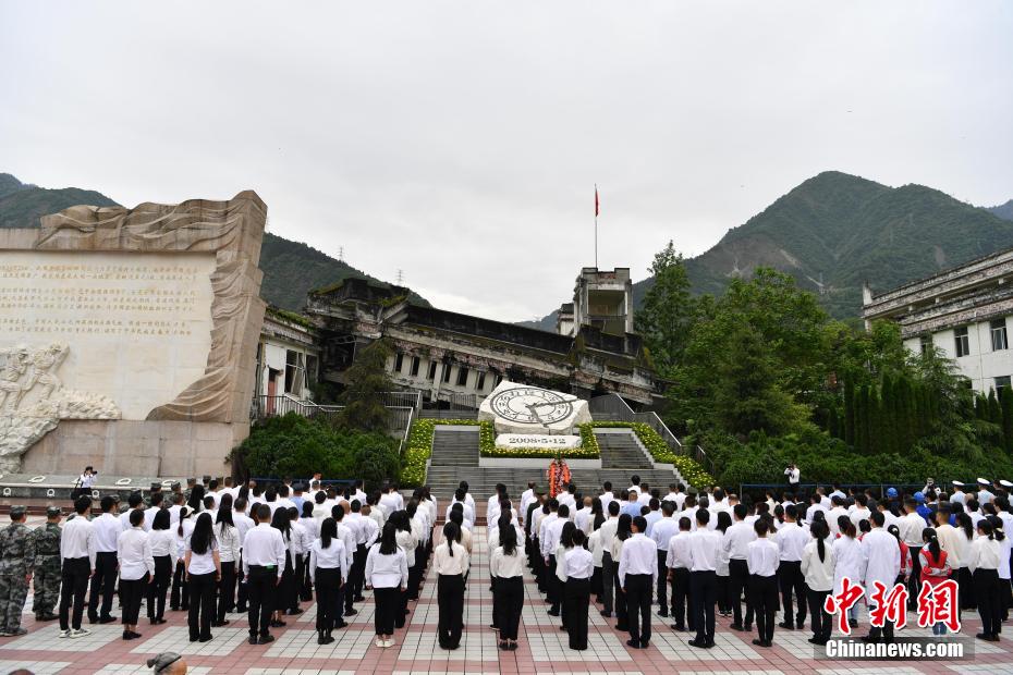 5月12日,四川省汶川縣在映秀鎮(zhèn)漩口中學(xué)遺址開展“5·12”汶川特大地震16周年追思活動(dòng)。來自汶川縣和全國(guó)各地的民眾為在汶川地震中遇難的同胞默哀,獻(xiàn)花祭奠,表達(dá)對(duì)逝者的哀思和懷念之情。圖為敬獻(xiàn)鮮花。盧國(guó)彤 攝