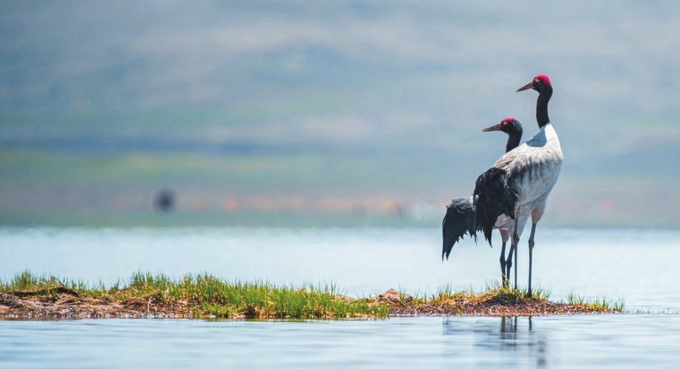 四川若爾蓋濕地國家級保護區(qū)內(nèi)的黑頸鶴。受訪者供圖