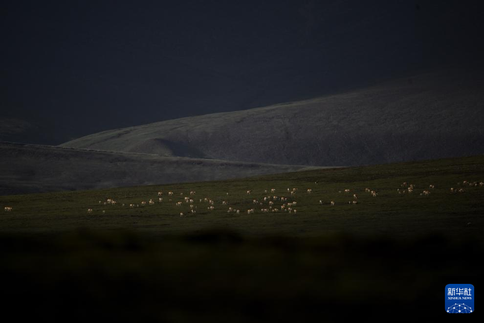 7月8日,在可可西里卓乃湖區(qū)域,幾只藏羚羊在活動。新華社 杜笑微 攝