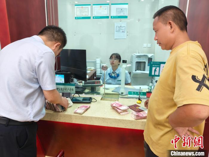 鄧先生帶著鈔票來(lái)到銀行網(wǎng)點(diǎn)??刀ù蠖珊又?供圖